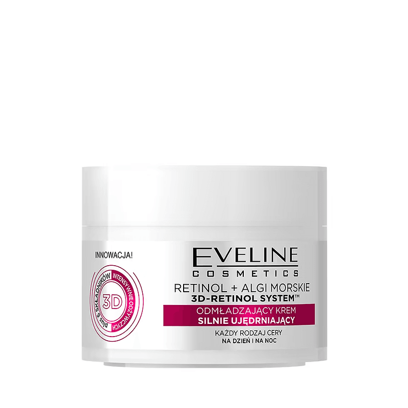 Redescoperă frumusețea și tinerețea pielii tale cu crema antirid de zi și noapte Eveline Retinol & Alge marine 3D Eveline Cosmetics. Această cremă fermă și puternică reprezintă o combinație inovatoare de ingrediente naturale și tehnologie avansată, special selectate pentru a satisface nevoile tuturor tipurilor de ten, pentru a reda pielii un aspect sănătos și tânăr. Formula sa exclusivă conține retinol și extract de alge marine, doi compuși puternici ce stimulează regenerarea pielii și reduc vizibil ridurile.