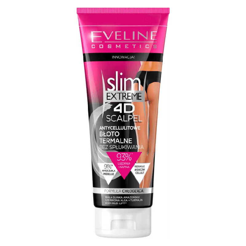 Serul anticelulitic fără clătire Slim Extreme 4D Scalpel, Eveline Cosmetics, este o soluție eficientă pentru îmbunătățirea structurii și elasticității pielii, reducerea celulitei acumulate și activarea procesului de ardere a țesutului adipos.